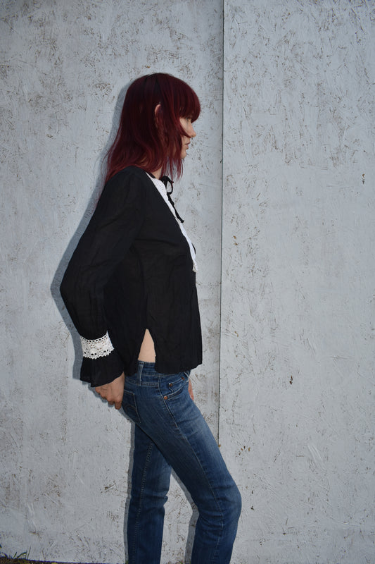 Vintage 80’s Tie Neck Bell sleeve Blouse with Lace